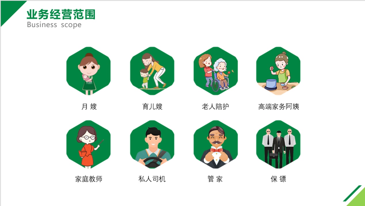 大班家政品牌创立于2006年,全国千户百强企业,北京四星级(最高星级)服务企业主要为家庭、医院提供月嫂、育儿嫂、高端保姆、家庭教师、病患照护等全品类综合家政服务,长期开设各项专业家庭技能培训。公司依托先审核后培训,不培训不入户的服务理念,十五年间为海内外客户提供了高品质服务。